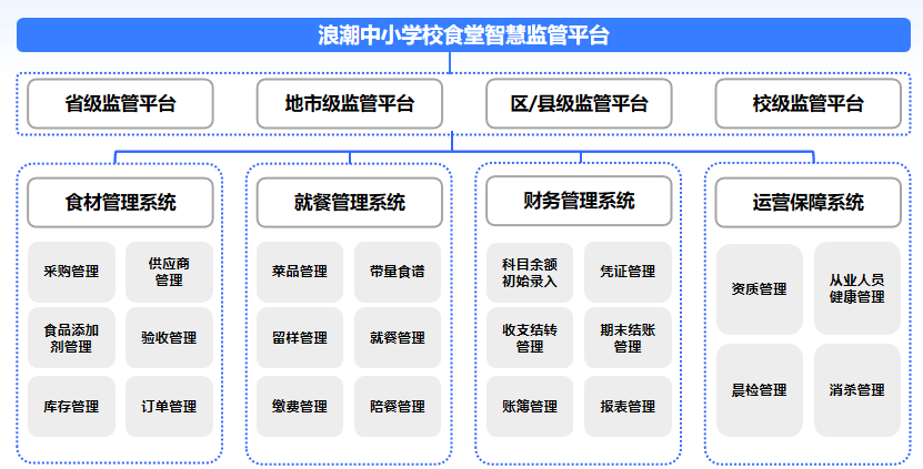 为响应国度关于加强校园食物平安的号召,海潮易云自动担任,推出海潮中小学校食堂聪慧监管平台。该平台基于“1个焦点平台+4大营业系统”的一体化架构,努力于实现从采购到供餐的全链条闭环监管,旨正在建牢平安防地、消弭办理缝隙,以数字化手段沉塑校园食堂办理模式。